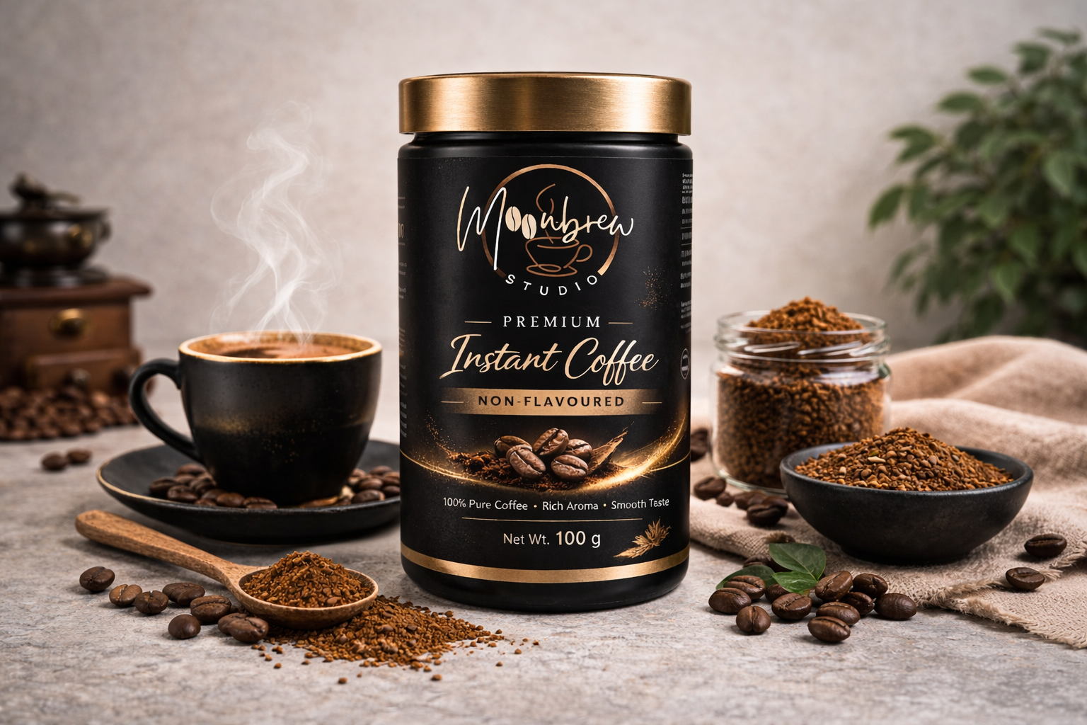 Pure premium instant coffee with a strong aroma and smooth taste. No added flavors — just authentic coffee richness.